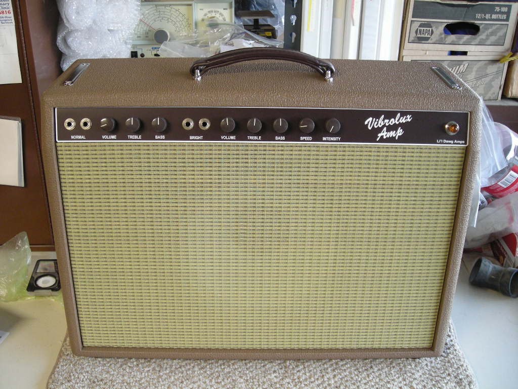 Another one of those special times came along when a good friend asked if I would build him one of the brown amps. Since I have so much fun with the tweeds I was a bit reluctant at first but then said I’d look into it. We talked back and forth a bit finally deciding on the 6G3 brown Deluxe as the build, and since those chassis’ are hard to find it would be built as a “LunchBox”. The amp delivered exactly what Mark wanted, and it broadened my horizon to where I decided to offer both the brown Deluxe and the brown Princeton. Once again, the “candy store” concept turned out to be the right thing for Li’l Dawg Amps.